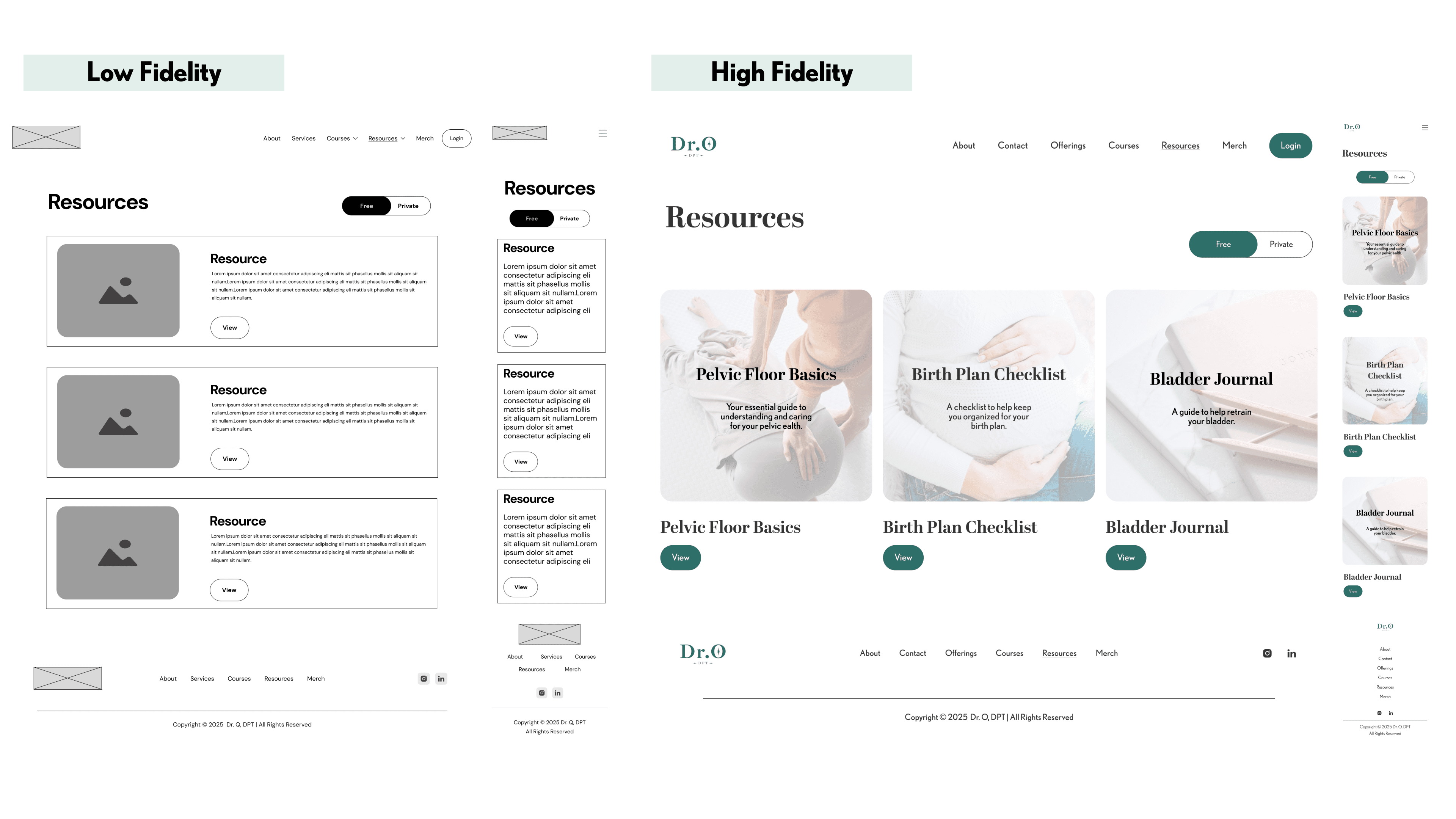 Before ideation, I aligned with Dr. O on must-haves: a modern site with service listings, booking functionality, resource downloads.