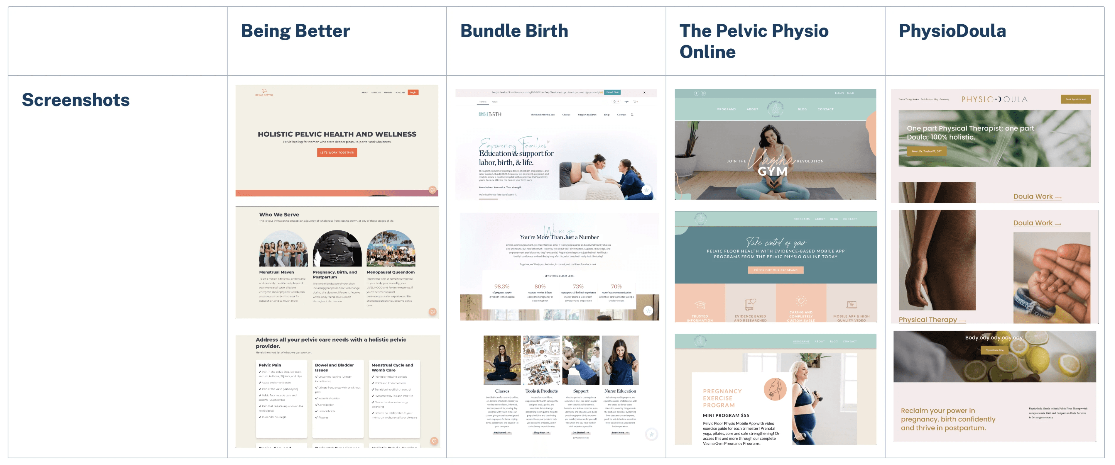Initiated the project with performing a competitive analysis and conducting user research interviews with recent or expecting mothers. The goal of the research phase was to understand the target audience better, and learn how similar professionals portray their services online.