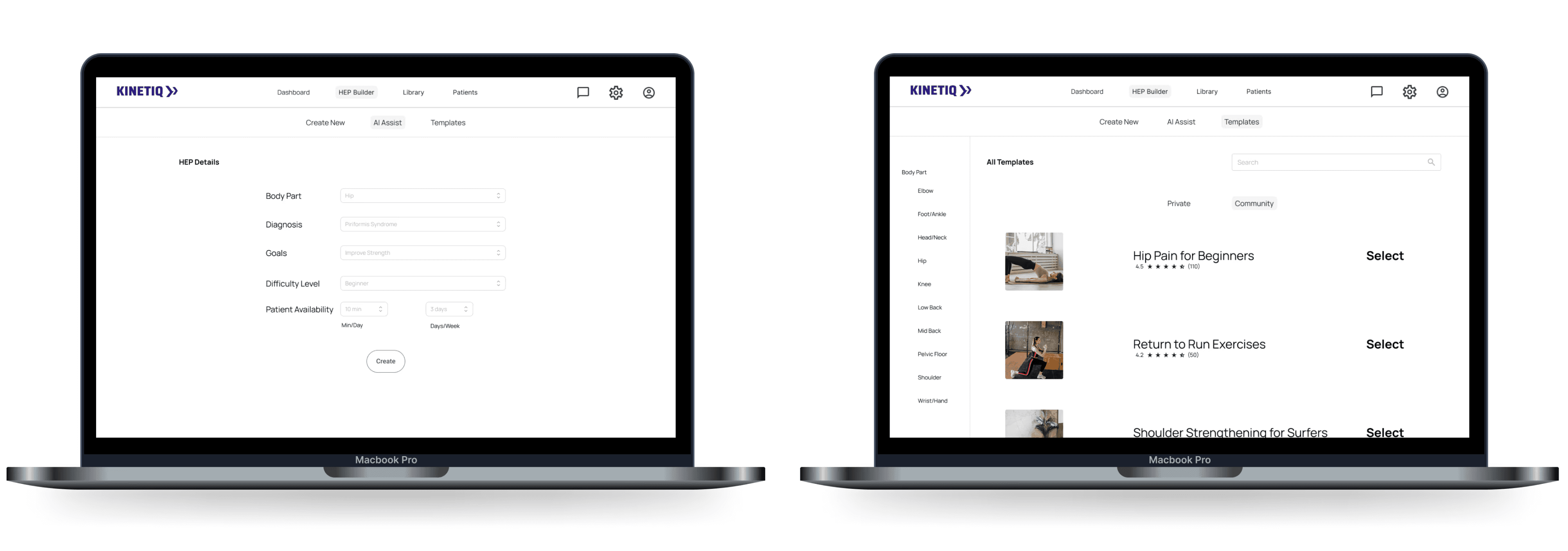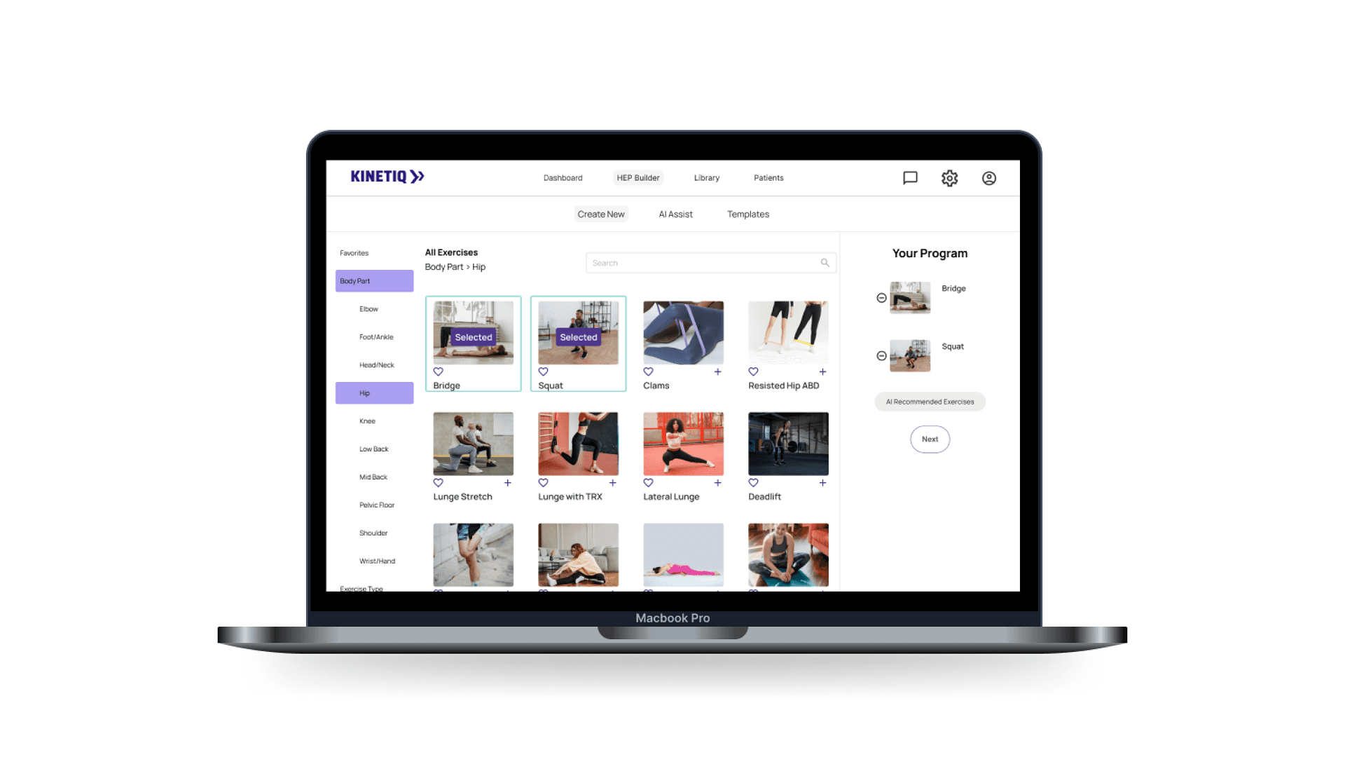 A modern HEP builder web application that dramatically improves speed and efficiency for physical therapy clinicians. Through an intuitive interface and streamlined workflows, the tool enables therapists to create personalized exercise programs quickly — reducing administrative burden and giving them more time with patients.