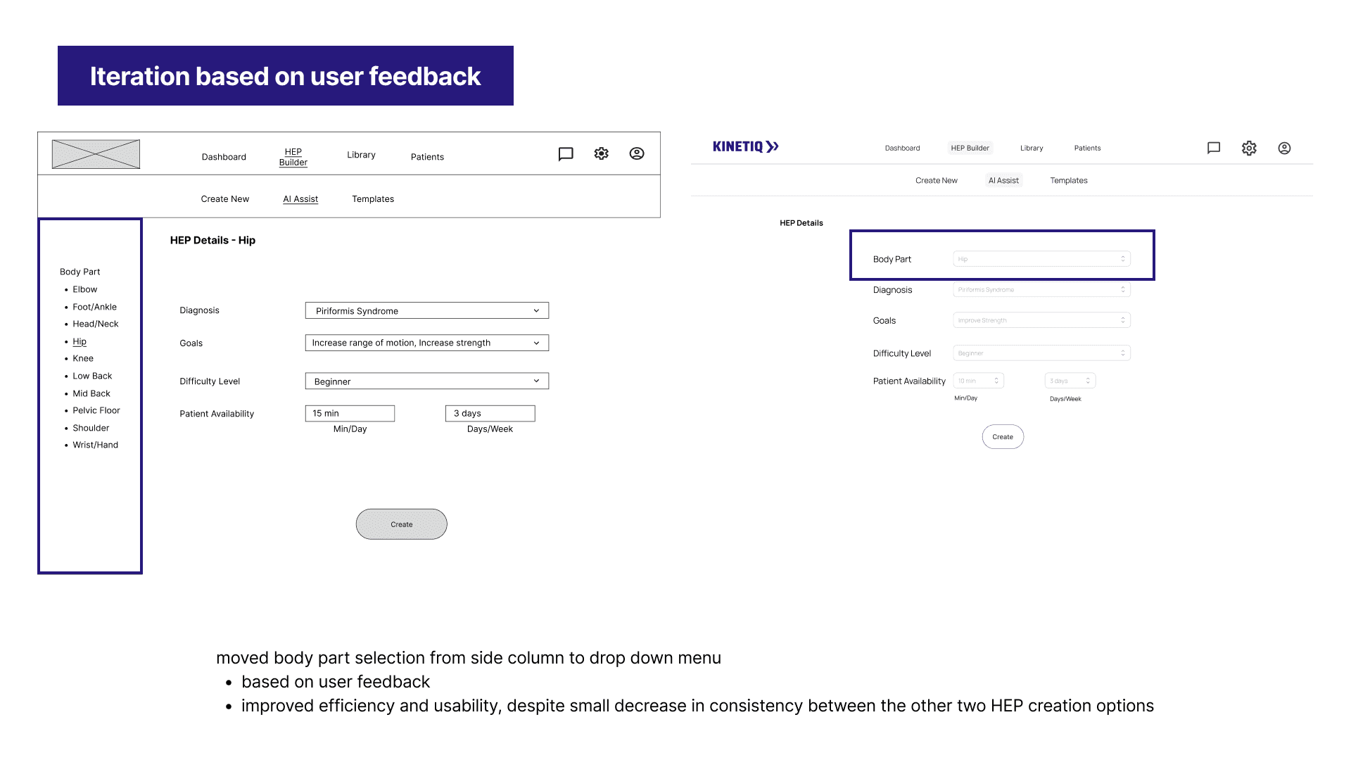 Notable iteration to layout was created based on user feedback for simplicity and ease of use.